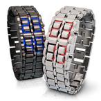 LED は常時光っているのではなく、ボタンを押したら三秒間点灯する仕様です。構造上、普通の時計に比べて時間が見にくいのはご愛嬌と云うか、そこを理解して購入しているので気にしません。ファッションアイテムですし! 女性用として「ボーイズ」サイズを買いましたが、思ったより太い(文字を表示する時にはそれっくらいの幅が必要なんだと思う)ので、男性がボーイズサイズ買ってもいいと思います。