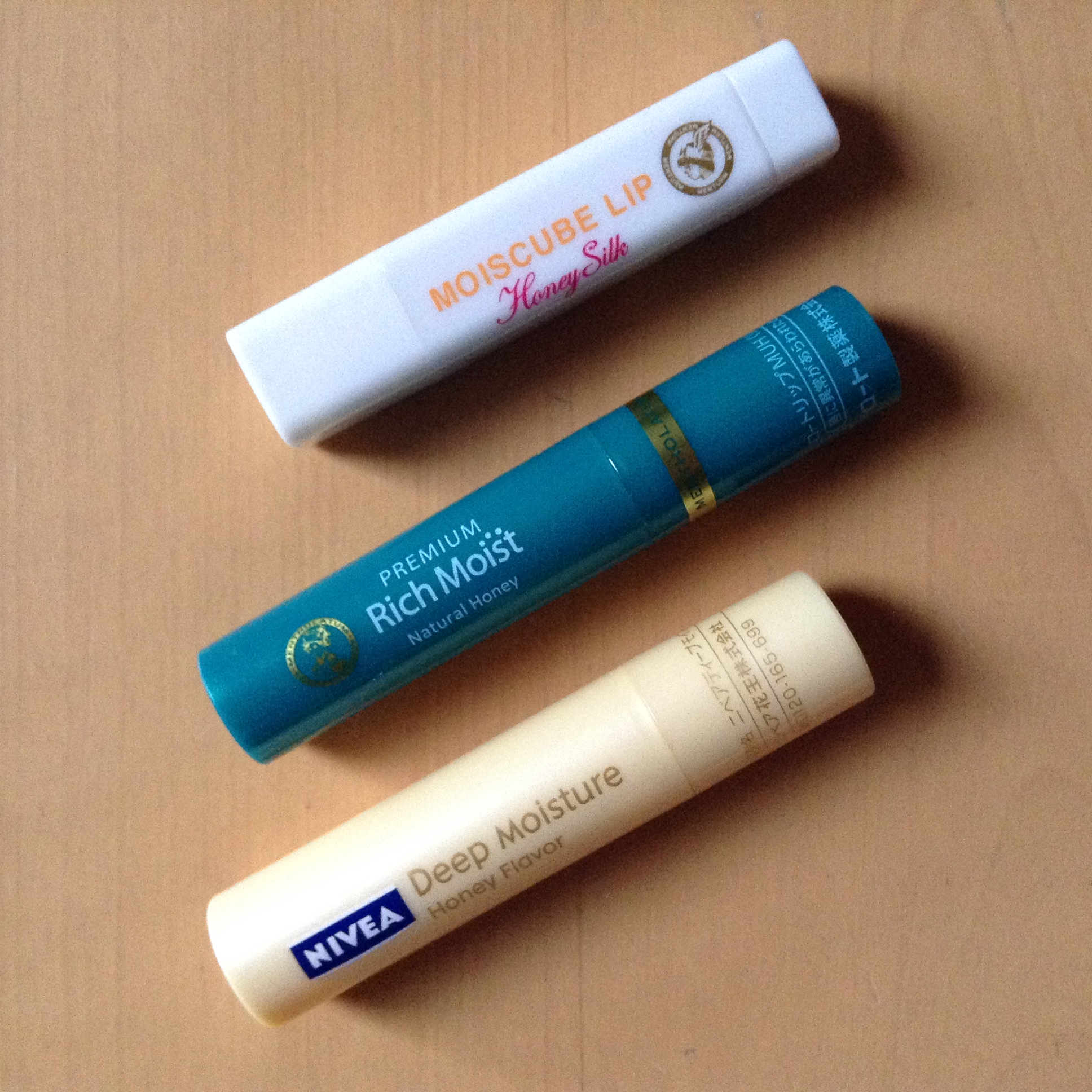 リップクリームレビューするよー。高保湿ラインのハニーの香りリップクリームです。なんではちみつかと云うとわたしがはちみつの香りが好きだからです。リップフォンデュのハニーでハマったんです。てことで似た価格帯の三つのリップクリームを買ってきたよ。つうかこの為に買ったんじゃなくて、必要に応じて買っていたら別メーカー、同じはちみつの香りで揃っちゃっただけなんだけど。
