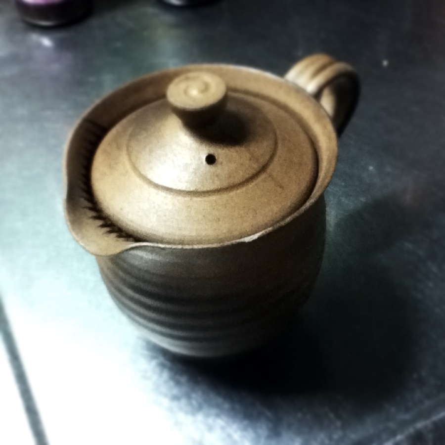 この急須、注ぎ口の縁に沢山の小さな穴が空いていて、これが茶こしを兼ねています。急須の蓋の内側ぐるりに細かな溝が刻まれていてこの細かい穴と溝でお茶のうまみ成分の最後の一滴まで絞り取れる、という歌い文句です。因みに写真の蓋に亀裂が入っているのは、うちで購入直後に落として割ったからです。高かったので接着剤でくっつけて使っています。