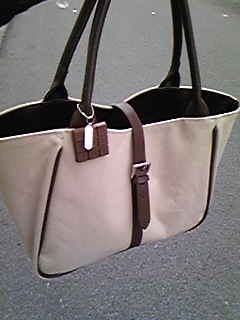 通勤カバン。現在売られているリプトン・リモーネのおまけに付いている、ピエール・マルコリーニのスイーツストラップのチェーンだけ着け換えて提げている。可愛らしくてとても気に入っている。