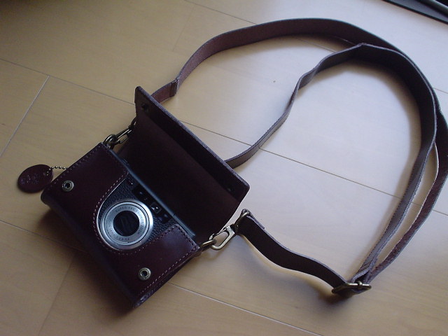 使用感などを少々、長所から。まず可愛い! 可愛いよー。だんだん革がこなれて行くのが楽しみです。ストラップ(と云うかアクセサリー)を栓としてカメラがケースから脱落しないような構造も良いです。そんなはめ込み式ではありますが、フィルムの交換はケースに入れたままでも出来ます。